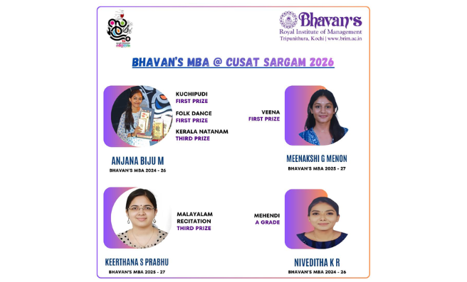 Bhavan’s MBA Students Shine at CUSAT Sargam 2026